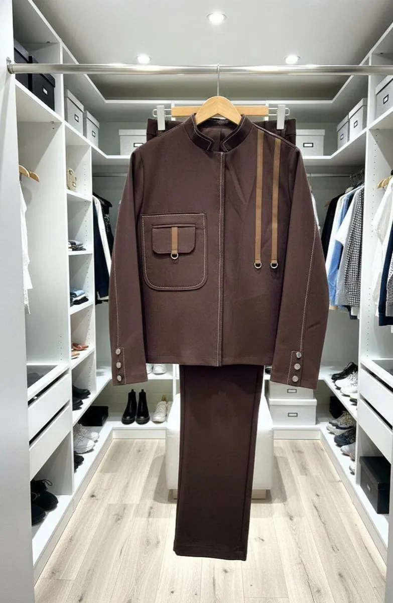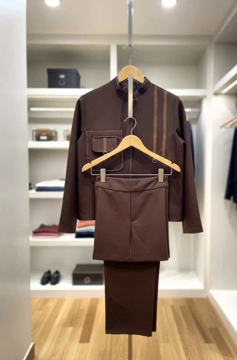 پارچه **مازراتی گرم و باکیفیت**، ایستایی عالی و دوام بالا دارد و باعث میشود کت و شلوار کاملاً مرتب روی بدن قرار بگیرد. قد متعادل کت (60 سانتیمتر) در کنار شلوار با قد 110 سانتیمتر، ترکیبی کشیده و جذاب ایجاد میکند که برای استایل عیدانه بسیار چشمنواز است.
