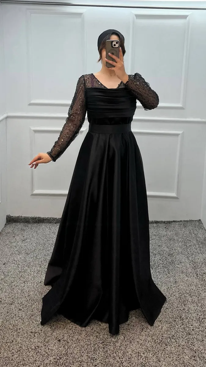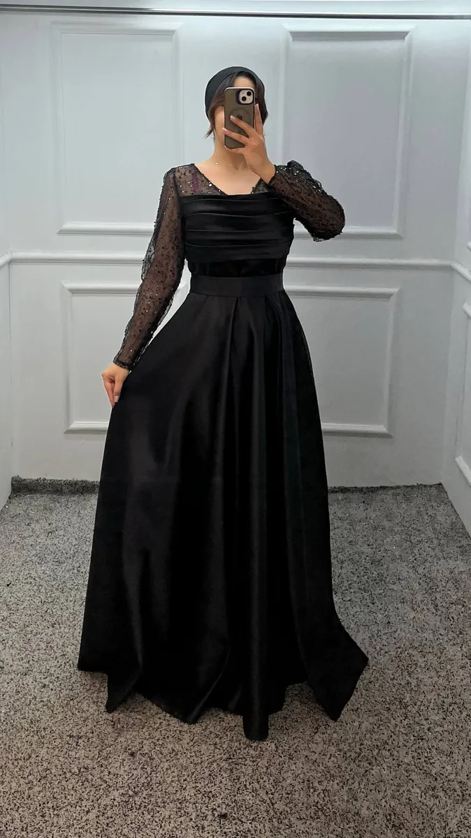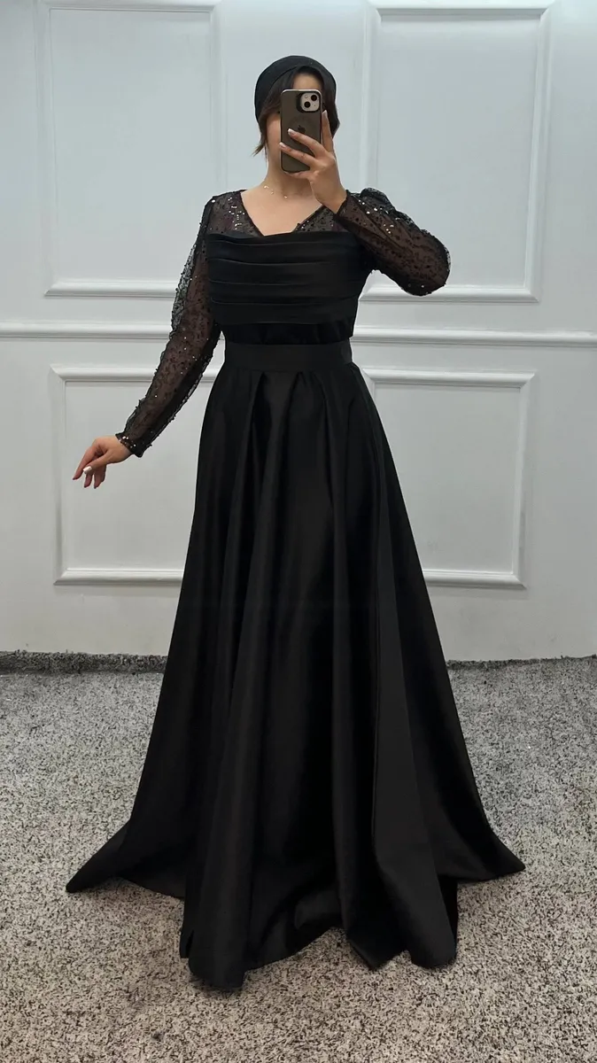 قد لباس حدود 150 سانتیمتر بوده و به دلیل دوخت تمیز و حرفهای، انتخابی عالی برای مراسم رسمی، عروسی، نامزدی و جشنهای شبانه است. رنگ مشکی کلاسیک آن نیز همیشه شیک، خاص و بدون ریسک خواهد بود.
