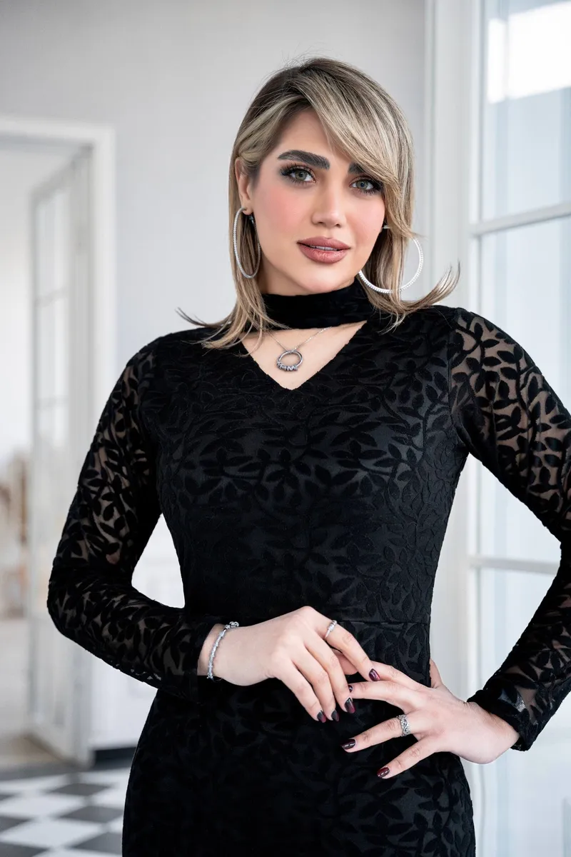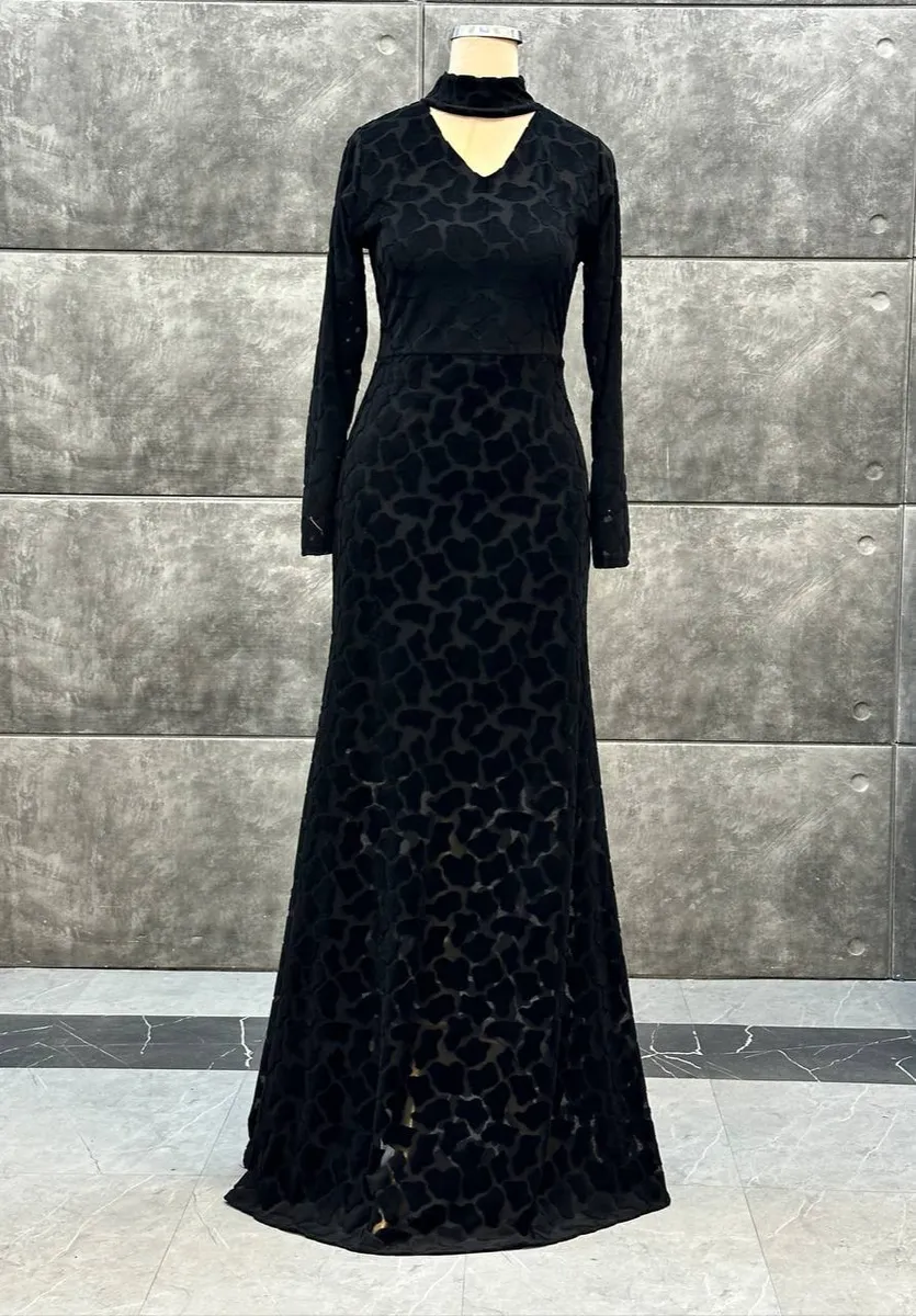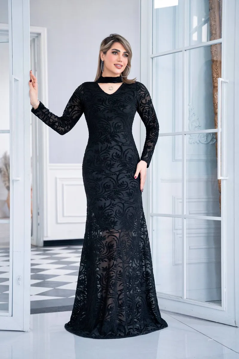 طرحدار بودن پارچه در کنار رنگ مشکی کلاسیک، ظاهری خاص و چشمنواز به لباس بخشیده و آن را مناسب مجالس رسمی، عروسی، مهمانیهای شبانه و مراسم خانوادگی کرده است. قد 160 سانتیمتری لباس باعث پوشش کامل و ظاهر آراسته میشود و تنخور اندامی آن بدون ایجاد حس تنگی، فرم بدن را زیباتر نشان میدهد.