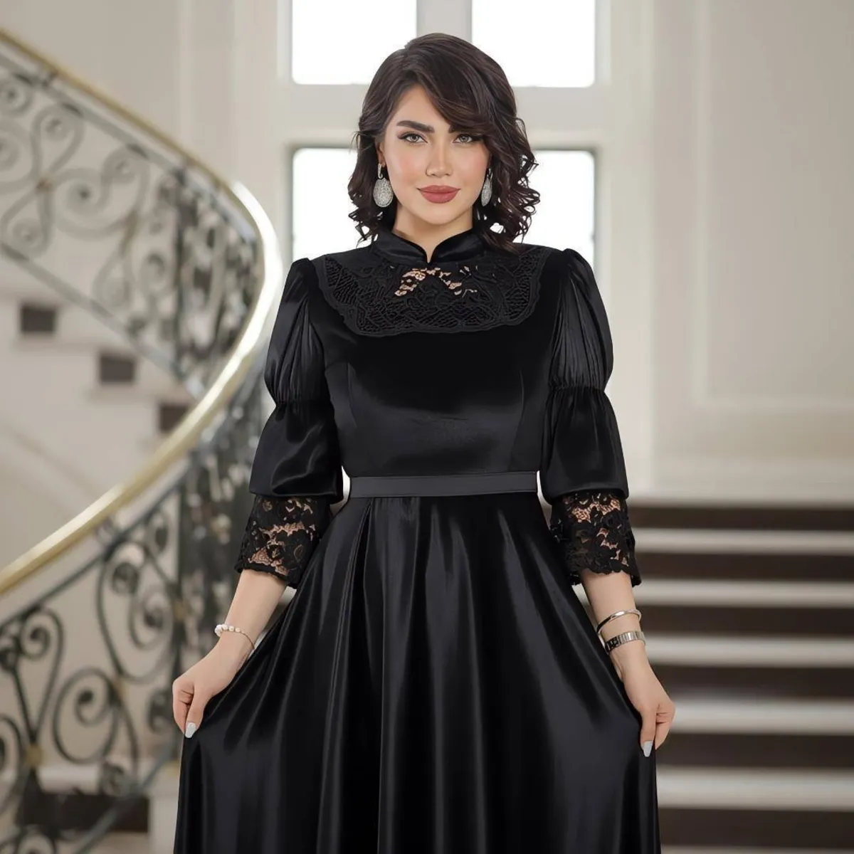 لباس مجلسی آدرین یک مدل ماکسی پوشیده با آستین بلند است که ترکیبی از مخمل و دانتل برجسته مخملی دارد. این ترکیب، ظاهری لوکس و بافتدار به لباس میبخشد و کیفیت دوخت آن تضمین شده است.
