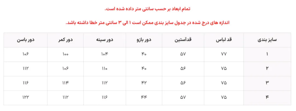 راستی برای انتخاب سایز مناسب خودت حتما جدول سایز بندی که همراه عکس محصول گذاشتم چک کن😉