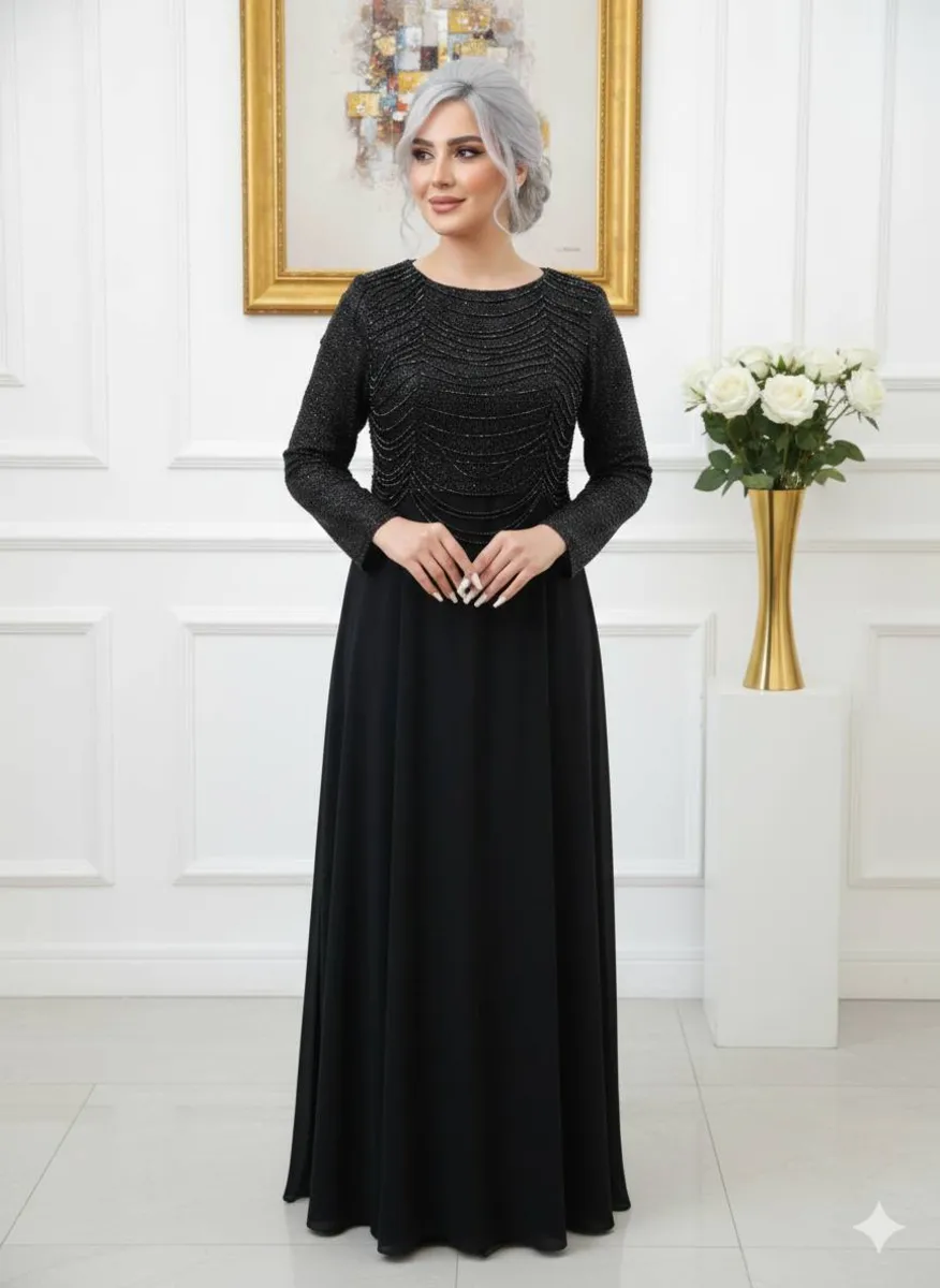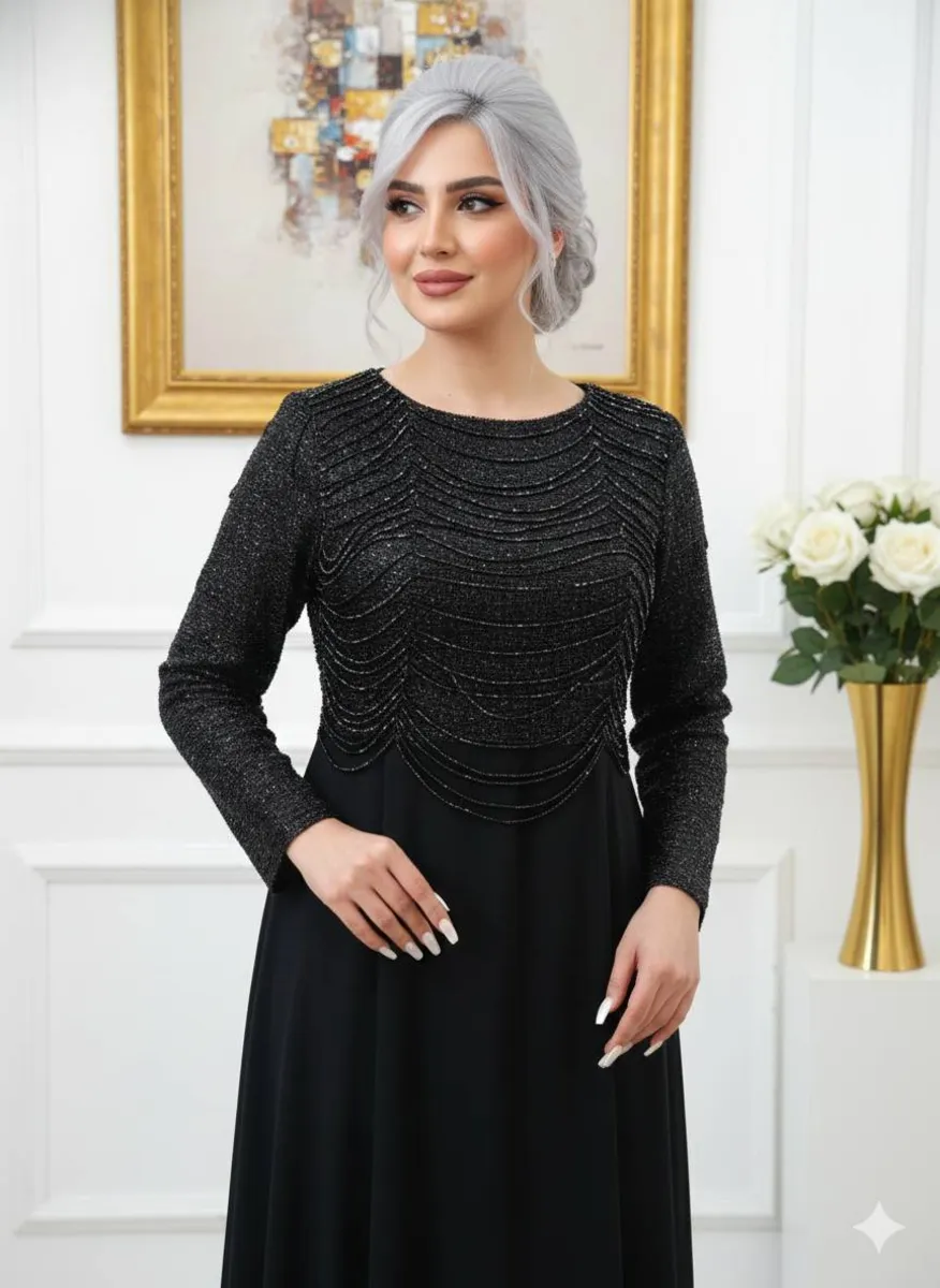 لباس مجلسی ماکسی شمیم با طراحی شیک و مجلل، انتخابی فوقالعاده برای مراسم رسمی، مجالس شب و مهمانیهای خاص در سایز بزرگ است. بالاتنه این مدل از دانتل چمنی ظریف طراحی شده و با ریسه سنگهای کریستالی درخشان جلوهای بسیار لوکس و چشمنواز به لباس بخشیده است.