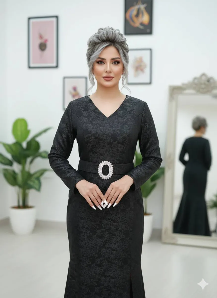 لباس مجلسی شکوه با طراحی ساده و شیک، انتخابی ایدهآل برای خانمهایی است که به وقار، ظرافت و استایل مینیمال اهمیت میدهند. این مدل از پارچه ژاکارد باکیفیت تهیه شده که بافتی زیبا، ایستایی مناسب و تنخور بسیار مرتبی روی اندام دارد. طراحی ساده لباس در کنار کمربند جداگانه، امکان تنظیم فرم لباس متناسب با اندام را فراهم کرده و جلوهای خوشفرم و زنانه ایجاد میکند.