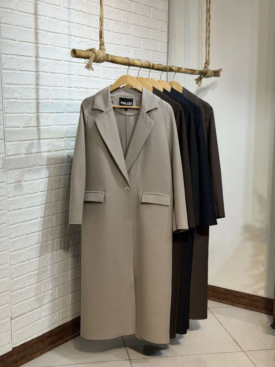✨ کت بلند یقه اینگلیسی پشت چاک دار