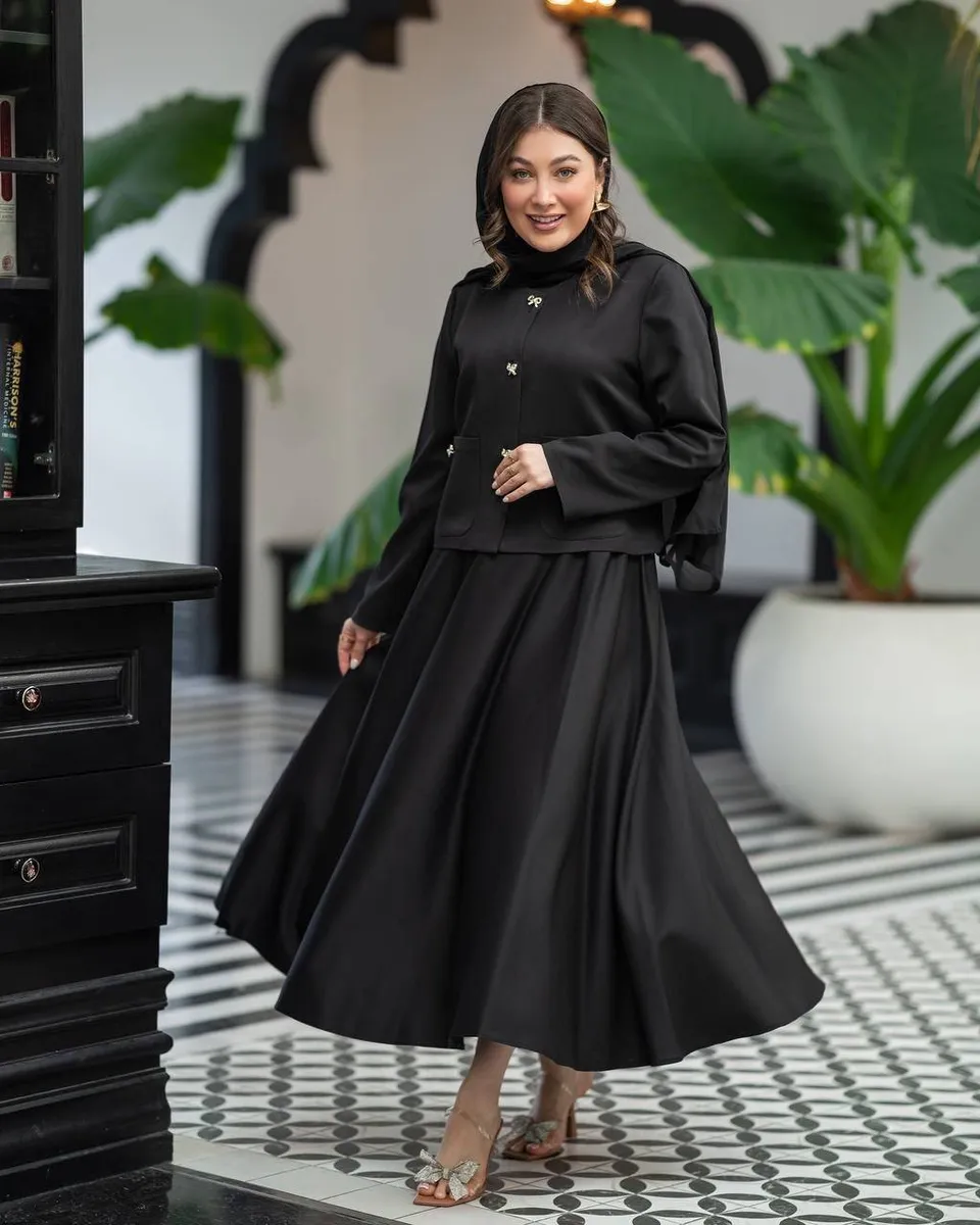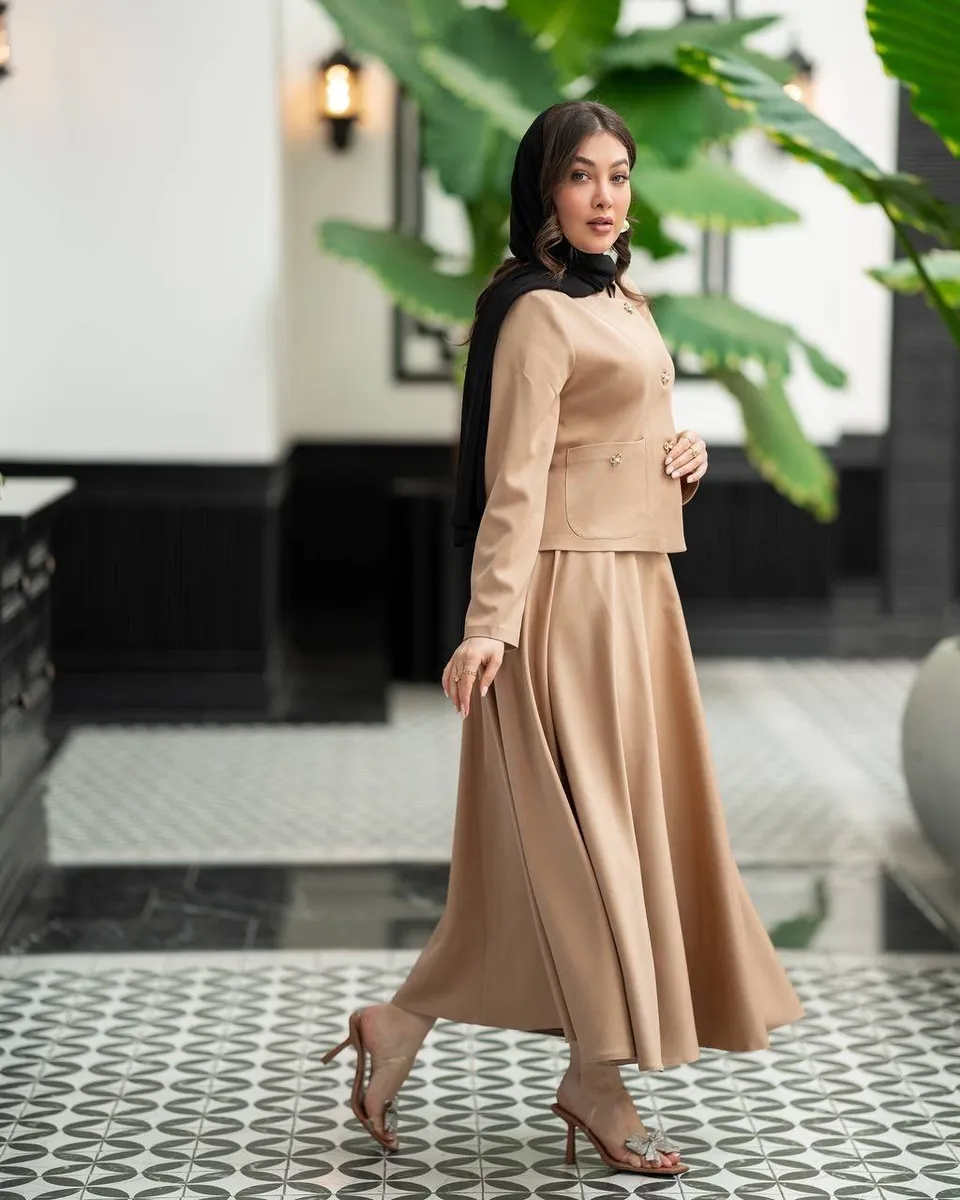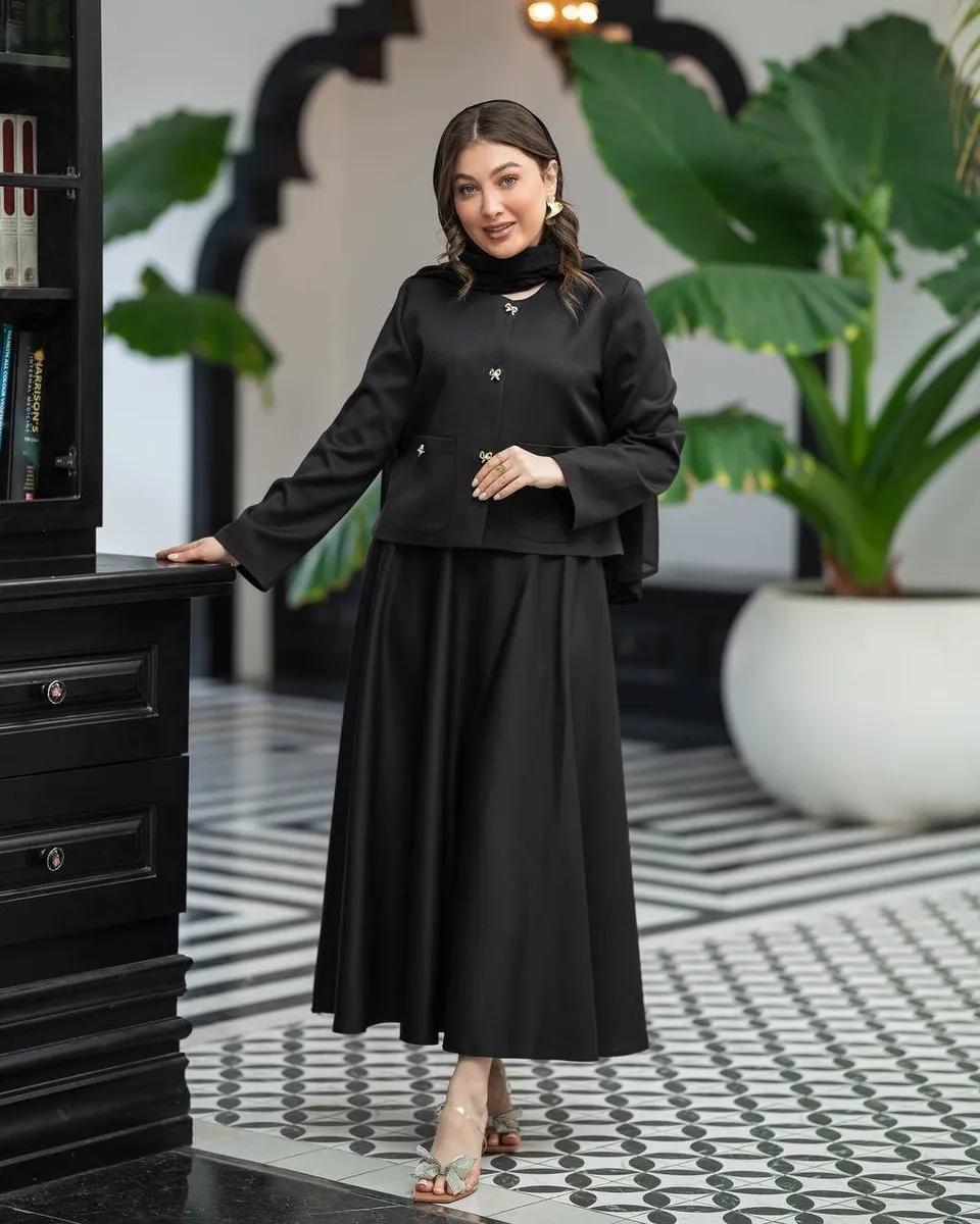 این ست کت و دامن مجلسی با پارچه مازراتی کجراه، انتخابی شیک و رسمی برای استایلهای عیدانه و مراسم خاص است. ایستایی عالی پارچه در کنار برش تمیز، تنخوری بسیار مرتب و زنانه ایجاد میکند. قد کوتاه و خوشفرم کت در ترکیب با دامن بلند، باعث کشیدهتر دیده شدن اندام شده و استایلی ظریف و کلاسیک میسازد. این مدل برای مهمانیهای نوروزی، دورهمیهای رسمی و استایلهای مجلسی کاملاً ایدهآل بوده و بهراحتی با کفش پاشنهدار یا کیفهای مجلسی ست میشود.