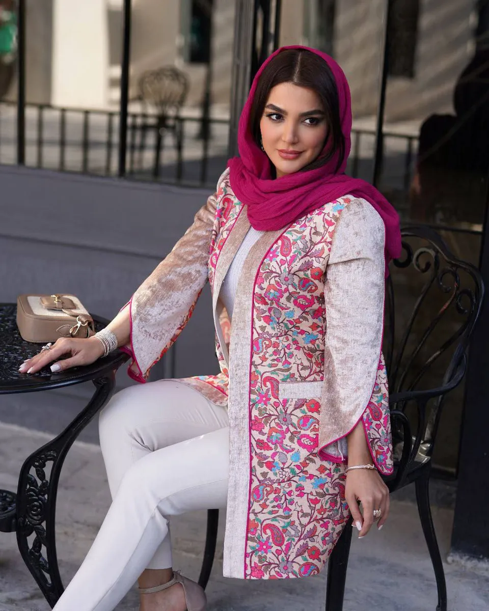 💐 پارچه کت: مخمل شانل،، قسمت پیش کار جهت ایستایی بهتر لایی پرشین دارد.
