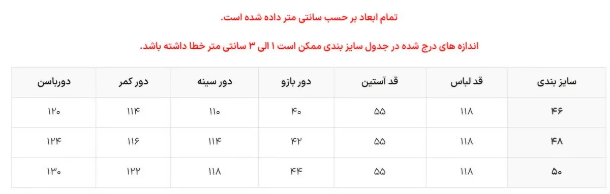 ✅ سایزبندی: سایز 46-48-50