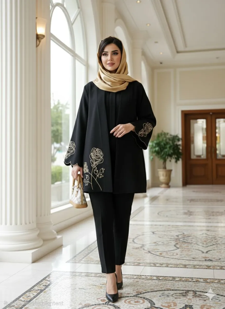 مانتو **مدل ویان** از کالکشن بهار 1405، انتخابی شیک و مطمئن برای بانوانی است که بهدنبال یک **مانتو کوتاه مجلسی مشکی سایز بزرگ** با طراحی ظریف و ماندگار هستند. این مدل با **گلدوزی ظریف و هنرمندانه روی کار**، جلوهای زنانه و خاص به استایل شما میبخشد و بهراحتی برای **عید، مهمانیهای رسمی، دورهمیهای شیک و حتی استایل نیمهرسمی** قابل استفاده است.