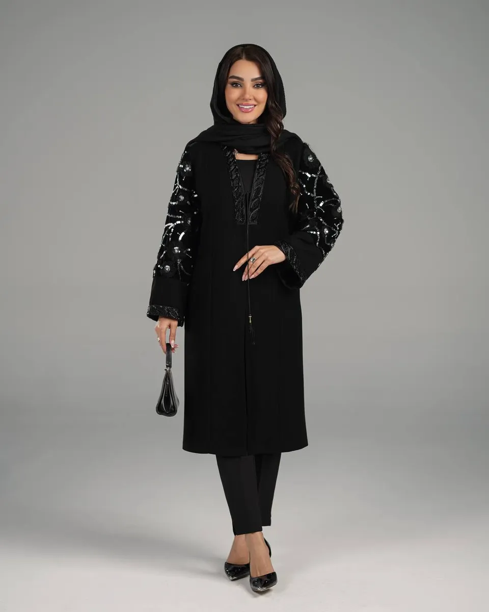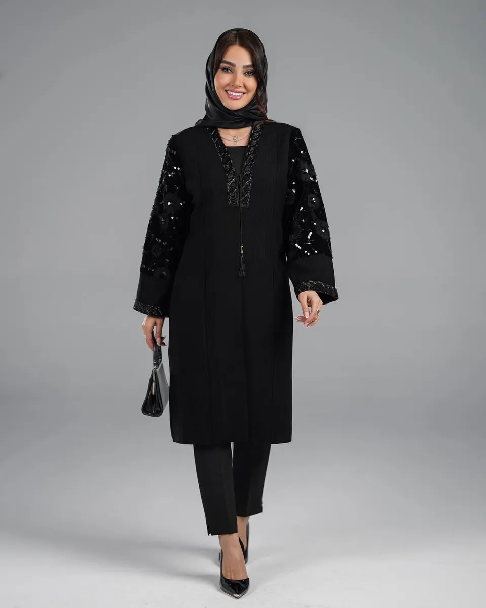 مانتو مجلسی هنگامه با طراحی فاخر و جزئیات دستدوز، انتخابی لوکس برای مراسم رسمی و مهمانیهای خاص است. این مدل از پارچه کرپ لمه ژاکارد با درخشش ظریف تهیه شده که ایستایی بسیار شیک و تنخور مجلسی دارد. یقه هفت کلاسیک در کنار آستینهای گیپور هندی جواهردوزیشده، جلوهای زنانه و بسیار خاص به این مانتو بخشیده است.
