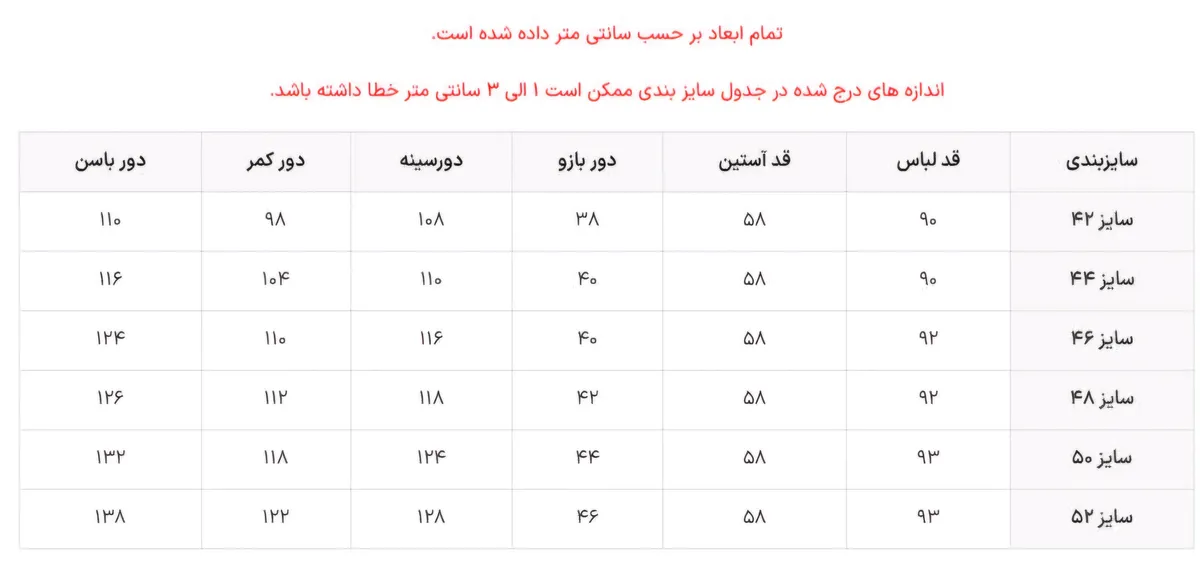 ✅سایزبندی : شامل 42-44_46_48_50_52