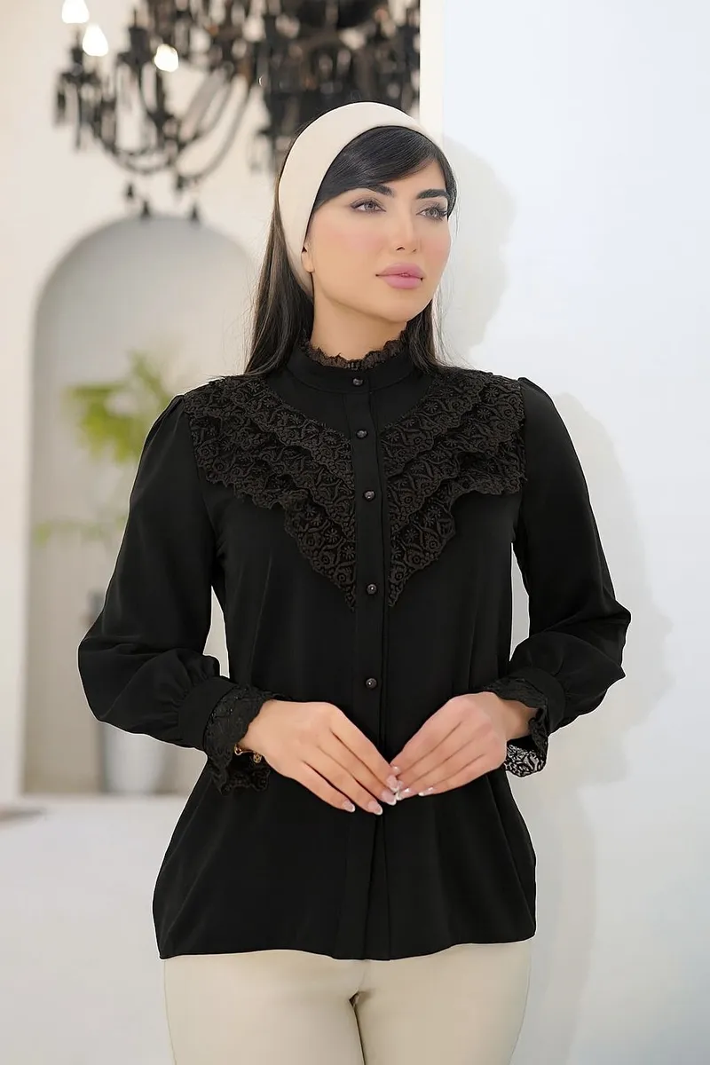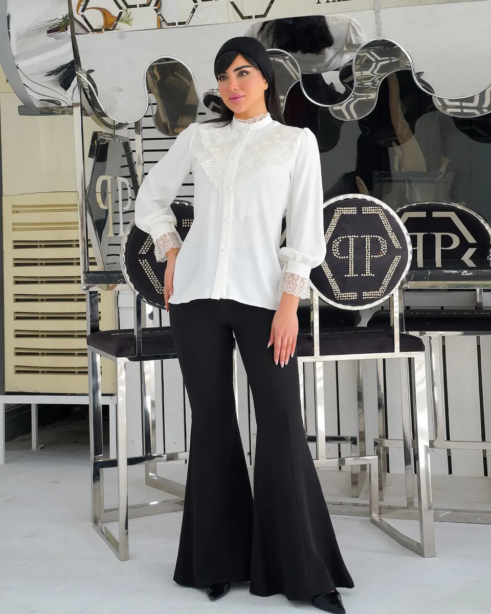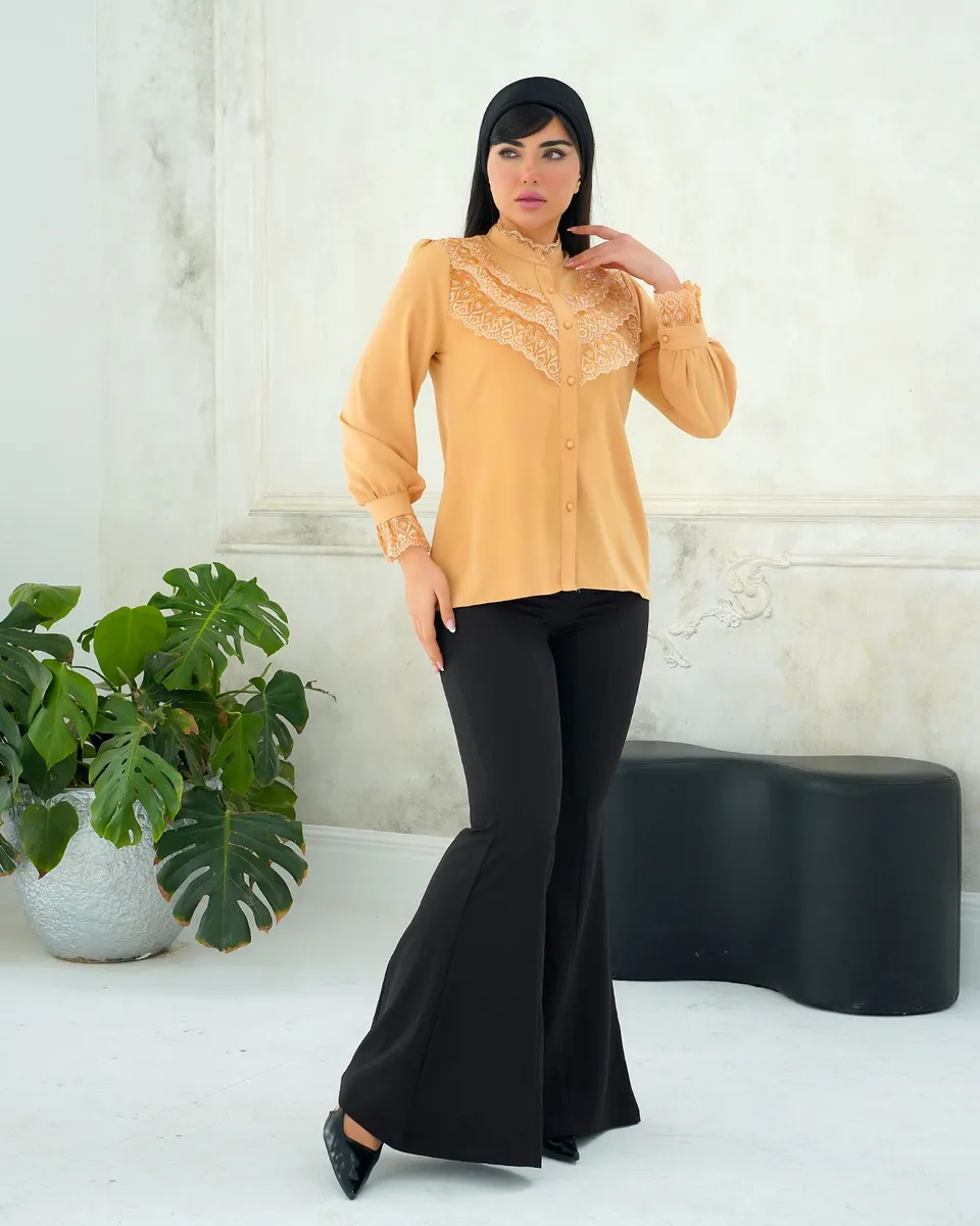 پارچهی **الیزه مصری اعلا با گرم بالا**، ایستایی بینقص، لطافت و تنخوری بسیار شیکی دارد؛ دقیقاً همان کیفیتی که **شبش را هم جای دیگر پیدا نمیکنی**. این شومیز کاملاً **مزوندوز** بوده و دکمهها **کاملاً کاربردی و بازشو** هستند.