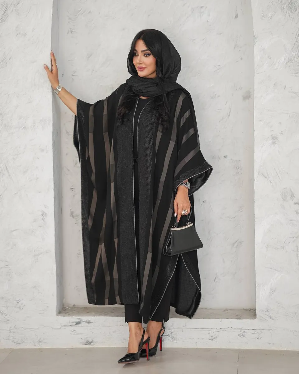 این مدل بهصورت **فریسایز (مناسب سایز 38 تا 50)** طراحی شده و با **قد 118 سانتیمتر**، پوشش کامل و تنخور آزاد و راحتی دارد. طراحی عبایی باعث میشود اندام بهزیبایی کاور شود و احساس راحتی در عین شیکپوشی حفظ گردد.