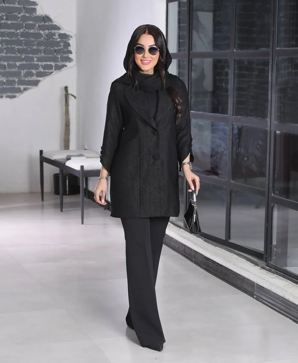 طراحی **آستین لالهای** در کنار **پیشکار لاییپرشینخورده**، علاوه بر زیبایی بصری، ایستایی بسیار عالی و تنخور قوارهدار را برای این کت فراهم میکند. فرم کتی مانتو باعث میشود بالاتنه خوشفرمتر دیده شود و انتخابی بسیار مناسب برای بانوان **سایز 44 تا 52** باشد. این مدل بهراحتی با شلوارهای پارچهای، کرپ یا دامنهای مجلسی ست شده و استایلی رسمی و جذاب میسازد.