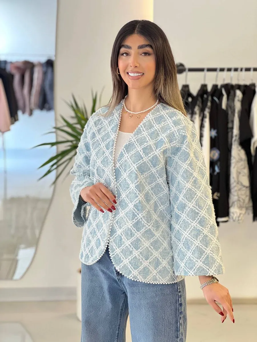 اگر به دنبال یک استایل متفاوت هستید که هم اسپرت باشد و هم رگههایی از زنانگی و ظرافت را به نمایش بگذارد، **کراپ کت جین مرواریدی** انتخابی بینظیر است. این محصول با تلفیق پارچه جین کلاسیک و تزئینات مدرن، ظاهری لوکس به استایل روزمره شما میبخشد.